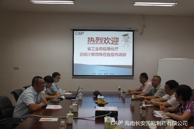 9月21日上午,海南省工業和信息化廳王靜廳長、海南省統計局局長包洪文、海南省工業和信息化廳巡視員廖強一行領導蒞臨海南長安制藥進行調研。公司總經理汪立冬及公司領導層對他們的到來表示熱烈歡迎。