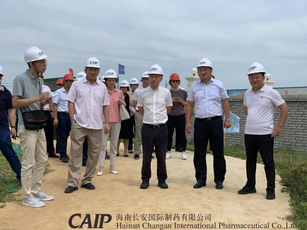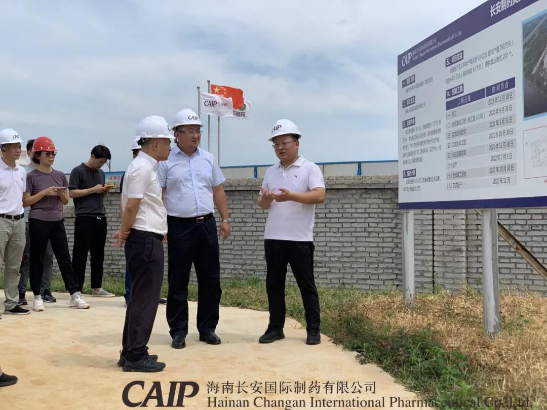 6月25日,??谑惺形睍?、市長丁暉等一行領導蒞臨長安制藥美安科技新城新廠建設項目考察調研。海口市委常委、副市長鞠磊,市發改委、住建局、自規局、統計局相關單位領導及高新區管委會主任劉立武等一同參加調研活動,海南長安制藥總經理汪立冬陪同調研。