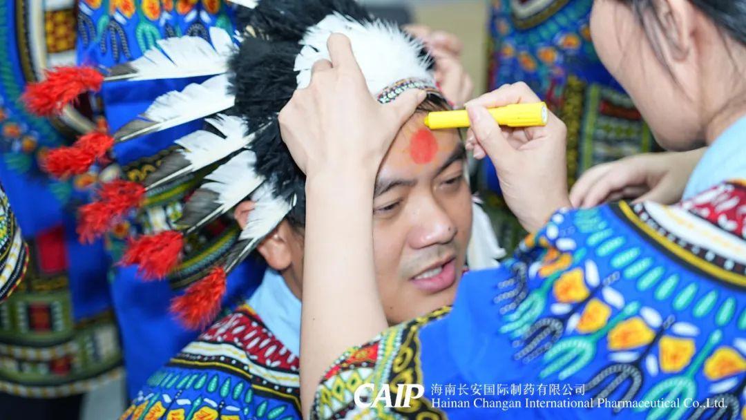 緊接著,全體骨干分為四個部落,選舉酋長、王妃和舞姬,開啟族內建設,取族名、立口號、擺隊形,并換上非洲當地的裝扮——頭戴羽冠、特色服飾,用特殊的油彩繪制出專屬部落五彩斑斕的精致臉譜。