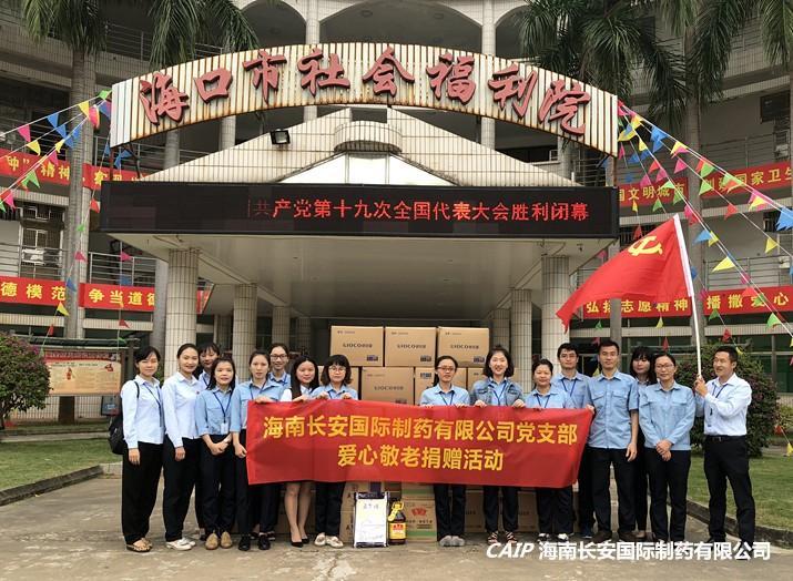 秉著強烈的社會責任心及社會責任感,提倡要為社會多做貢獻,是長安制藥一直以來的企業發展理念,在公司領導的大力支持下,長安制藥黨支部的配合下,特組織2017年10月31日前往海口市社會福利院進行愛心敬老捐贈活動,各部門代表一早從公司出發,為老人們送去了愛心慰問物品。今天,對所有參加活動的長安人來說,是個感動又難忘的一天。