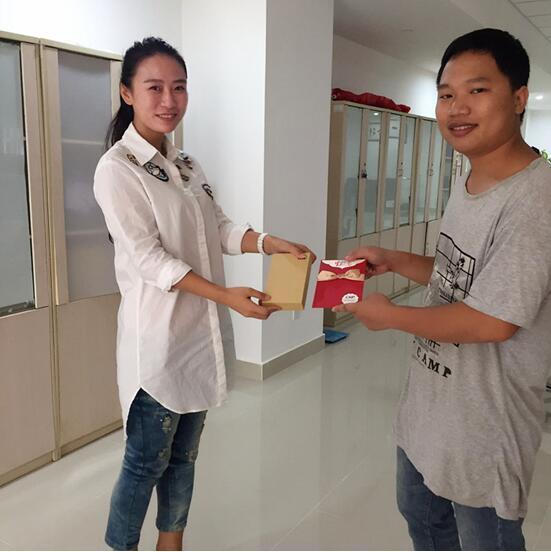 對于很多員工來說,工作繁忙,生日時間也許會忘記,但公司卻為員工記著,2016年11月1日,11月的第一天,公司人力行政部的企業文化經理宋佳為當天過生日的生產一線員工陳光圣送上生日祝福,并送上生日禮物,由總經理簽名的生日賀卡一張,精美禮品一個,禮物雖不貴重,但是禮物寄予了公司對員工的關愛。通過公司開展員工生日送祝福活動不僅增強了公司與員工的凝聚力,同時也體現了長安制藥公司“以人為本”的企業文化理念,提升了員工對公司的認同感和歸屬感。