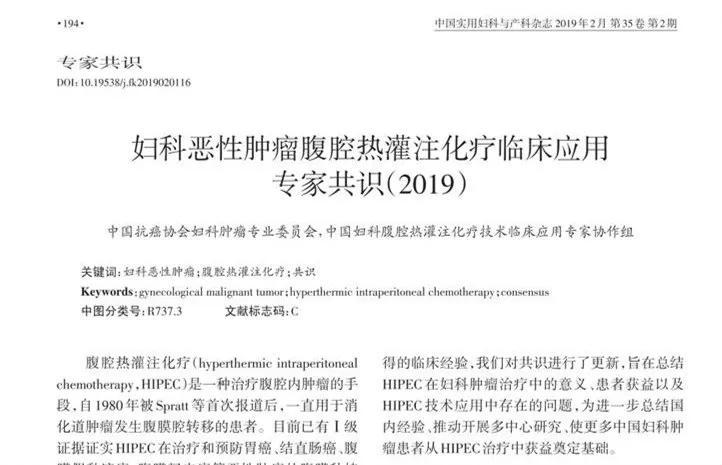 2017年,中國婦科腫瘤專家遵循循證醫學原則,對應用HIPEC治療婦科腫瘤的證據進行了總結,并以此為依據制定了我國首部《婦科腫瘤腹腔熱灌注治療臨床應用專家共識》。2017年后,HIPEC技術的合理運用和臨床經驗又獲得了更進一步的進展。